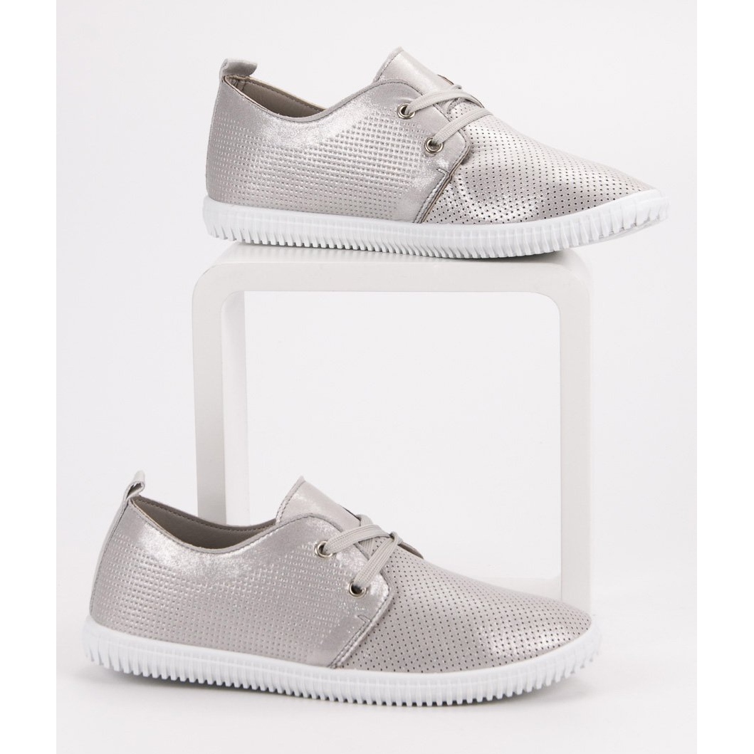 Descoperiți în fiecare zi eleganța și confortul cu pantofii gri clasici de la marca Super Mode. Finisati cu piele ecologica subtila, stralucitoare, acesti pantofi unici au gauri microscopice care le confera un caracter unic. Construcția lor ușoară și talpa bine modelată fac chiar și plimbările lungi o plăcere și vă puteți bucura de fiecare pas.