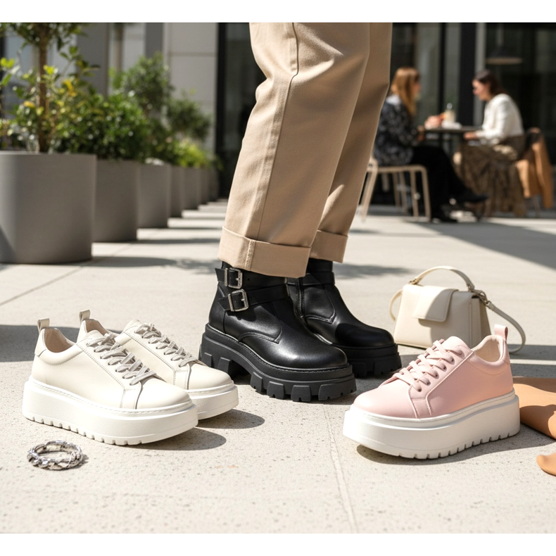 Platformele de zi cu zi sunt o alegere excelentă pentru persoanele care apreciază confortul și doresc să adauge câțiva centimetri la înălțimea lor fără a fi nevoiți să se echilibreze pe tocuri înalte. Adidașii cu talpă masivă se potrivesc perfect cu blugii tăiați drept, un tricou supradimensionat și o jachetă bomber.