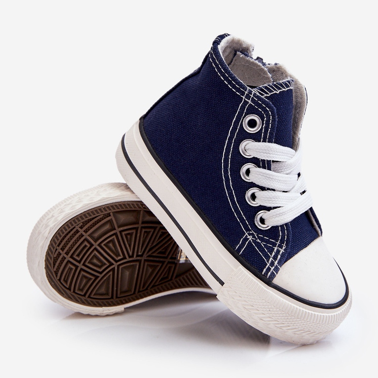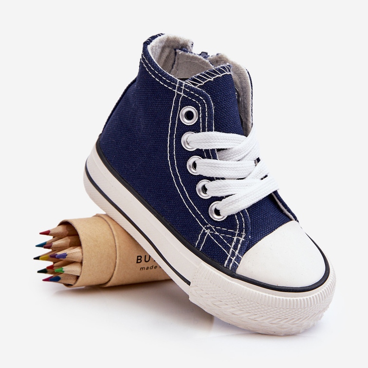 Adidași pentru copii înalți cu fermoar, bleumarin, este o propunere perfectă pentru fiecare tânăr fan al soluțiilor la modă și funcționale. Se caracterizează printr-o manoperă de înaltă calitate, ceea ce le face rezistente la numeroase murdărie, care cu siguranță vor mulțumi fiecare părinte. Acești pantofi extrem de stilați, confecționați din țesătură durabilă, garantează nu doar un aspect grozav, ci și confort de purtare pe tot parcursul zilei.