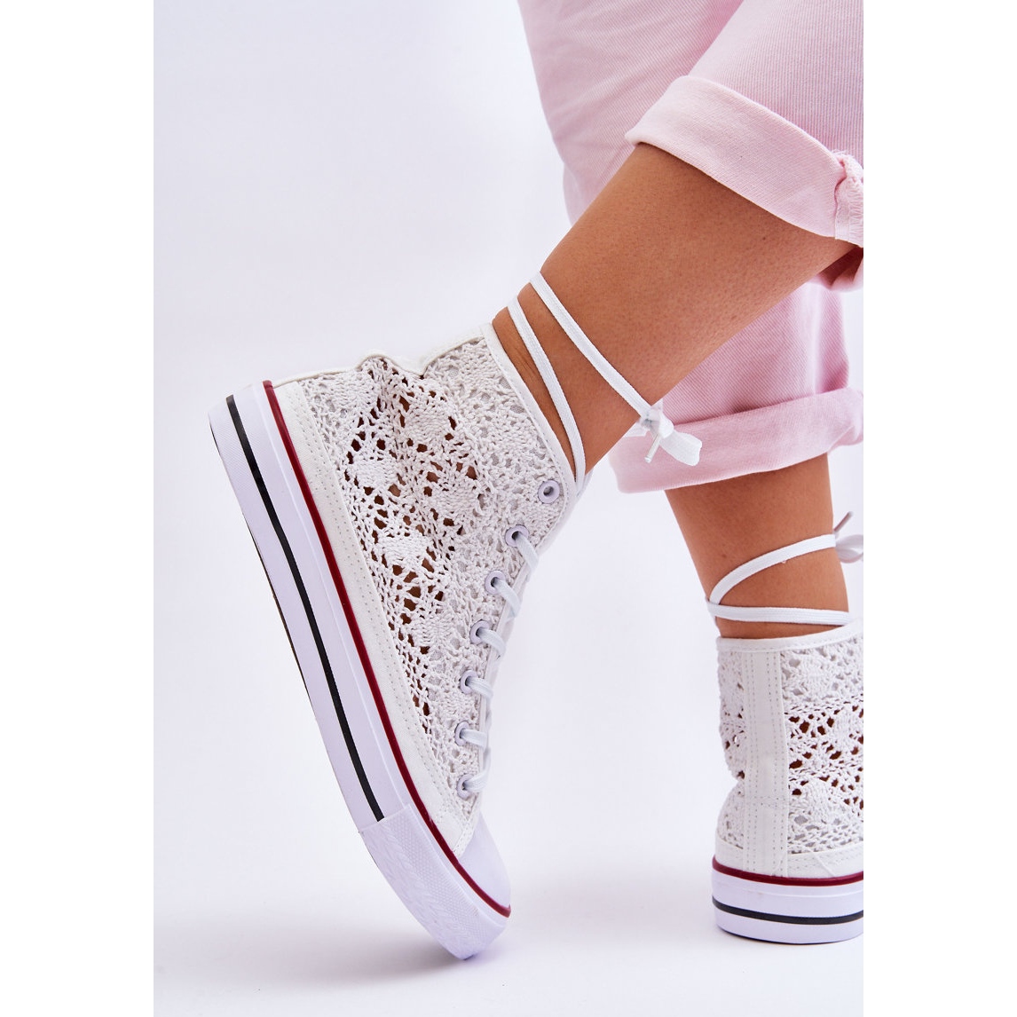 Detalii: FR1 Pantofi Înalți Dantela De Damă Alb Cornella