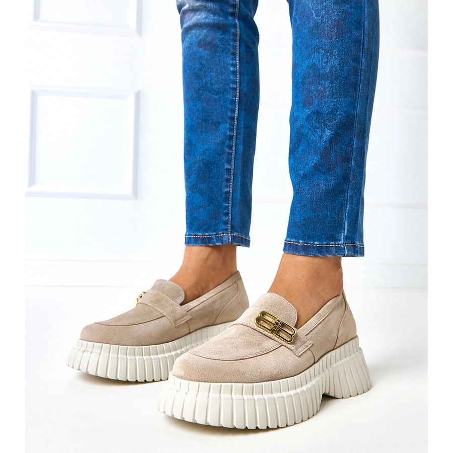 Pantofi din piele de căprioară bej Karino este o alegere perfectă pentru femeile care apreciază stilul și confortul. Fabricate din piele naturală de înaltă calitate, acești pantofi joși nu sunt doar la modă, ci și foarte confortabile. Un deget rotund din plastic le oferă un aspect modern, care este perfect pentru stilizările de vară.