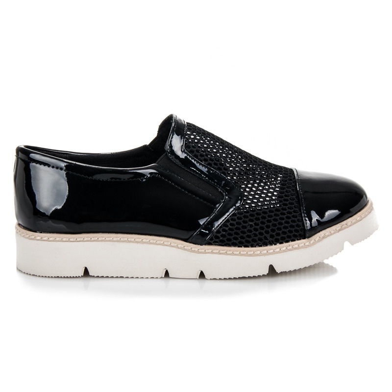 Descoperiți eleganța și confortul cu pantofii lacuitați Vinceza, care se potrivesc perfect cu ultimele tendințe de modă. Acești pantofi negri eleganti sunt o alegere perfectă pentru femeile care apreciază atât estetica, cât și confortul purtării. Croiala lor slip-on și designul ajurat asigură ușurința de îmbrăcat și respirabilitate, ceea ce le face perfecte pentru zilele de primăvară și vară.