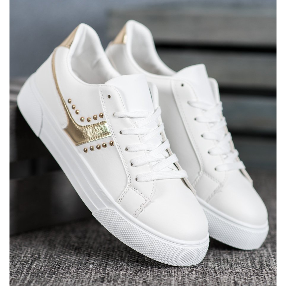 Pantofii SHELOVET cu siret cu decor auriu in alb este o propunere ideala pentru femeile care apreciaza combinatia dintre stil si confort. Acești pantofi sport moderni sunt perfecti atât pentru utilizarea de zi cu zi, cât și pentru activitățile în aer liber.