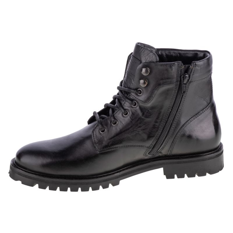Acești pantofi sunt prinși cu șireturi, ceea ce permite o ajustare ușoară la nevoile individuale. Nasul rotund le confera un caracter clasic, iar banda de rulare groasa ofera o aderenta excelenta pe diverse suprafete. Materialul tălpii este din material sintetic, ceea ce mărește rezistența la abraziune, iar căptușeala interioară din material textil garantează o senzație plăcută de căldură, care este deosebit de importantă în zilele de iarnă.