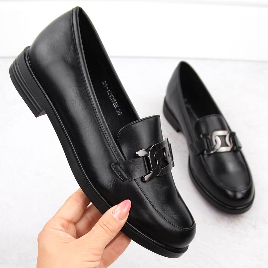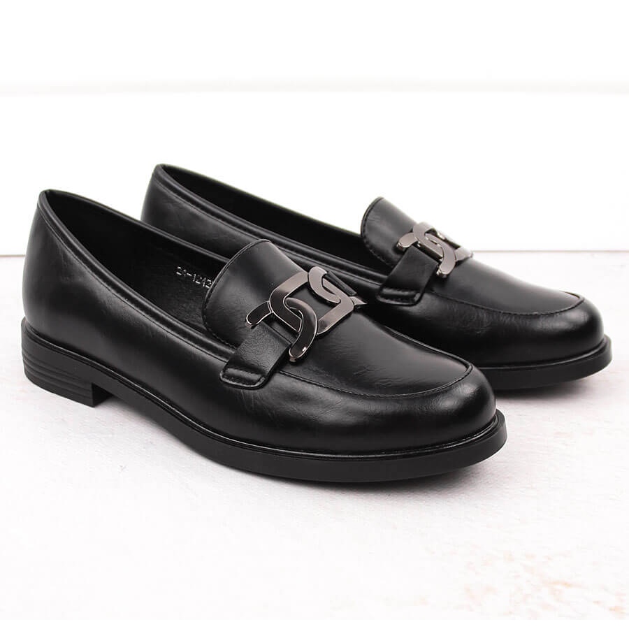 Potocki Pantofi lord de dama cu decor, negri Potocki 12425 negru