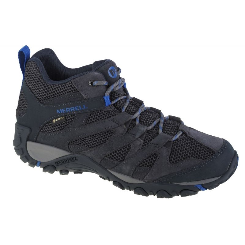 Pantofi Merrell Alverstone Mid GTX J033025 - albastru bleumarin, pantofi de trekking pentru bărbați care combină forța, confortul și protecția împotriva condițiilor meteorologice. Ideal pentru a solicita rătăcirea și utilizarea de zi cu zi în domeniu.
