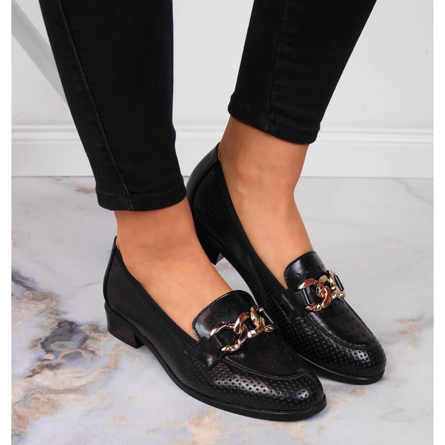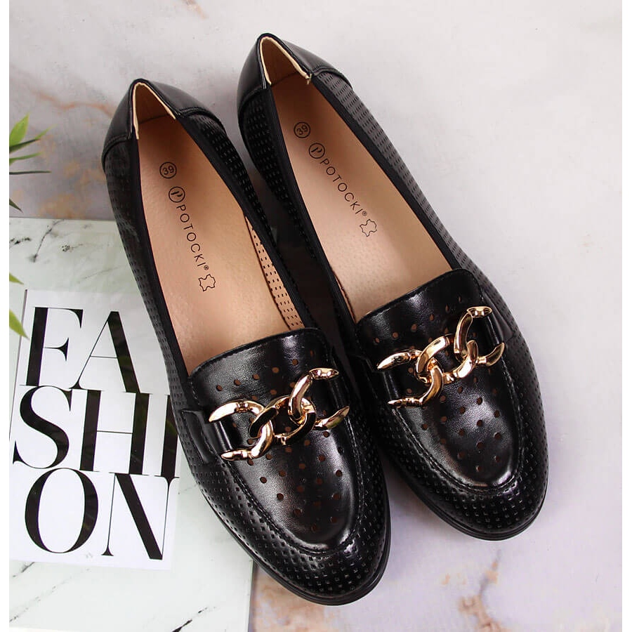 **Pantofi negri Potocki ajurati cu lant - eleganta si confort pentru fiecare ocazie!**