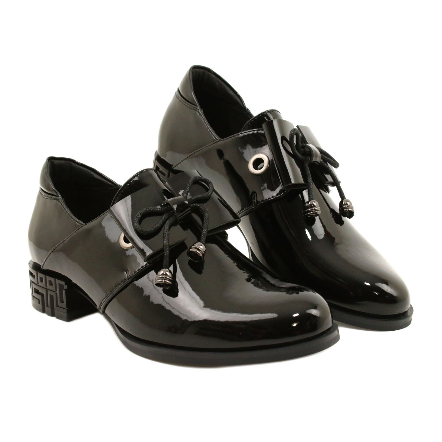 Pantofii Sergio Leone PB260 cu fundita sunt alegerea perfecta pentru fiecare femeie care apreciaza eleganta si confortul. Acești pantofi lacuiți atrăgătoare, într-o culoare neagră intensă, vor atrage cu siguranță atenția și vor fi o completare perfectă atât pentru stilul formal, cât și pentru cel de zi cu zi.