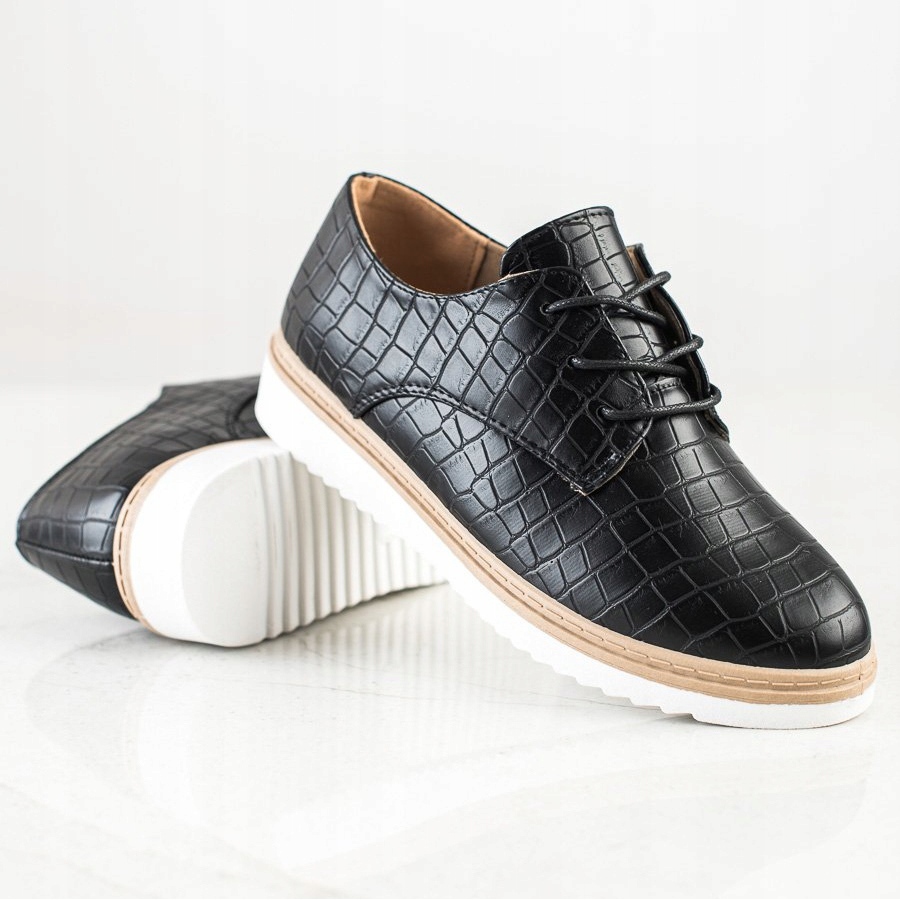 Acești pantofi negri prezintă, de asemenea, un model unic de animale care îi face distinctivi. Datorită vârfului rotund, picioarele tale se simt confortabil în ele, iar închiderea cu șireturi permite o potrivire perfectă pe orice picior. Pantofii de dama SHELOVET sunt o alegere perfecta atat pentru iesirile de zi cu zi, cat si pentru ocazii mai elegante.