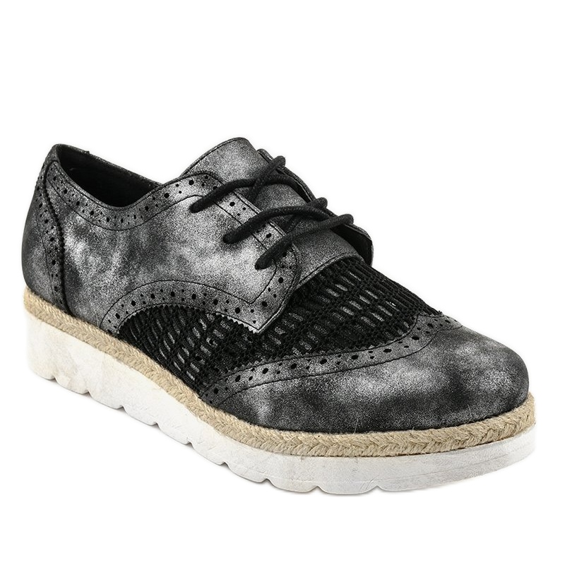 Partea superioară neagră cu vârf rotund și închidere cu șireturi face ca acest model să se potrivească perfect oricărui picior, asigurând o purtare confortabilă de zi cu zi. Un avantaj suplimentar este sfoara de iută înfășurată în jurul tălpii albe, sintetice, care conferă pantofilor un caracter unic.