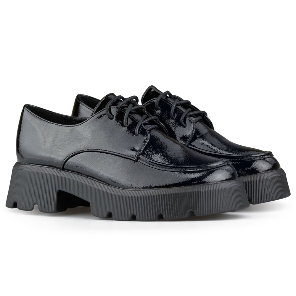 Detalii: Pantofi negri cu siret, pantofi de dama cu talpa groasa negru
