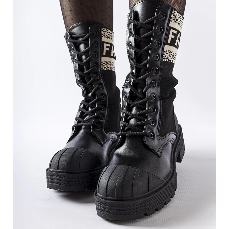 Inna marka Pantofi negri cu șosete cu inscripția Daria albă negru