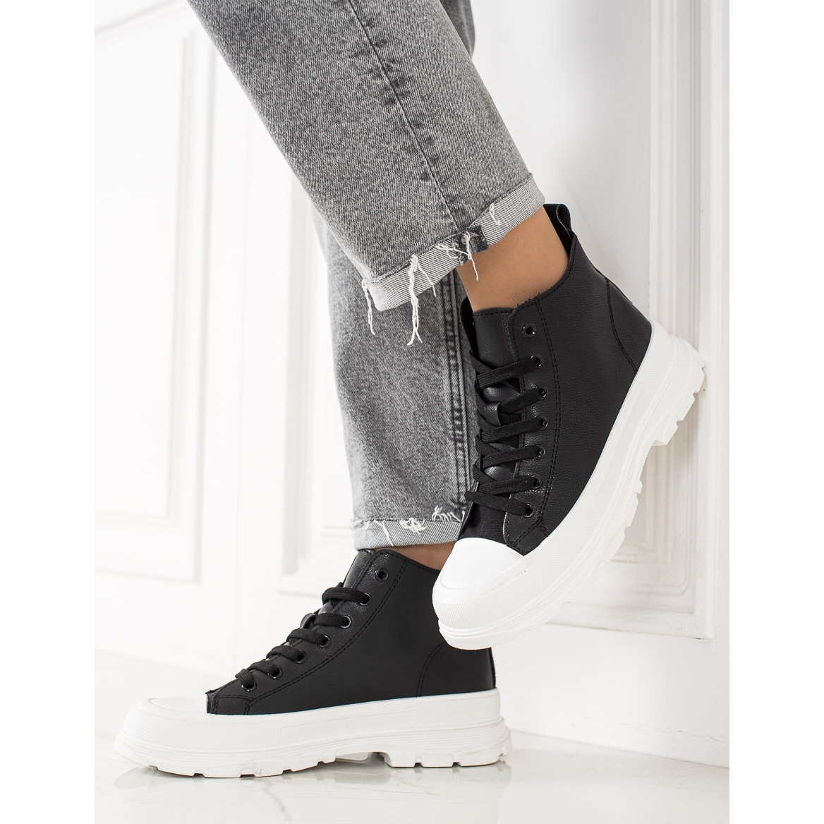 Descoperiți o nouă dimensiune a confortului și stilului cu pantofii sport TRENDI negri înalți! Acești pantofi eleganți, gândiți pentru femei, sunt alegerea perfectă pentru utilizarea de zi cu zi, combinând stilul sport și casual. Realizate din piele ecologica de inalta calitate, sunt perfecte pentru primavara, vara, toamna si iarna.
