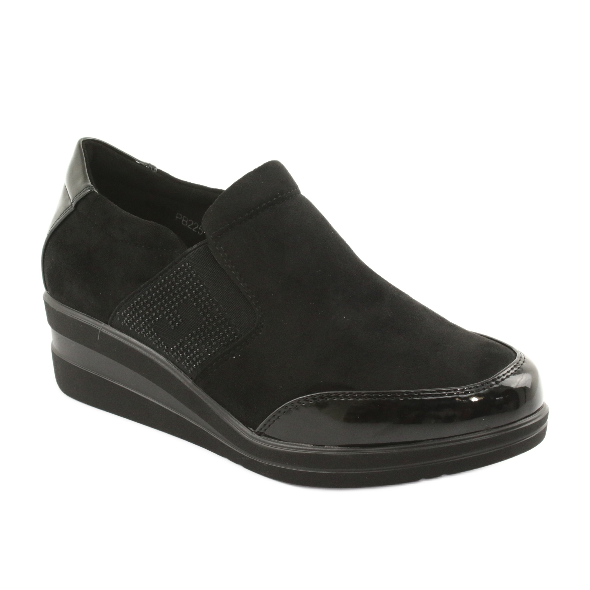 Descoperă frumusețea eleganței și confortului cu pantofii cu pană Sergio Leone 225 Acești pantofi de damă de culoare neagră atrăgătoare sunt un must-have în garderoba oricărei femei care prețuiește soluțiile elegante și moderne. Realizate din piele intoarsa ecologica de inalta calitate, cu atentie la detalii, asigura nu doar un aspect perfect, ci si confort de utilizare datorita insertiei din piele.
