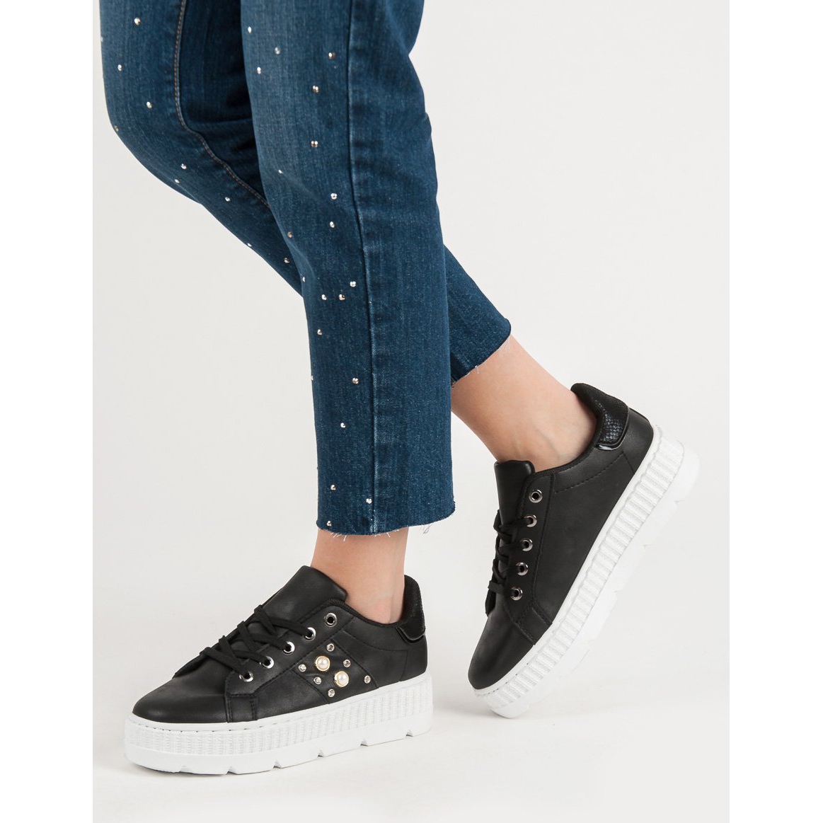 Încălțămintea neagră cu platformă de la KeeShoes este o alegere excelentă pentru femeile care doresc să combine confortul cu un aspect la modă. Caracterizati prin decorațiuni atrăgătoare din strasuri, acești pantofi încântă prin stilul lor unic. Culoarea neagră universală le face o completare perfectă pentru multe stiluri, atât în fiecare zi, cât și pentru diverse ocazii.