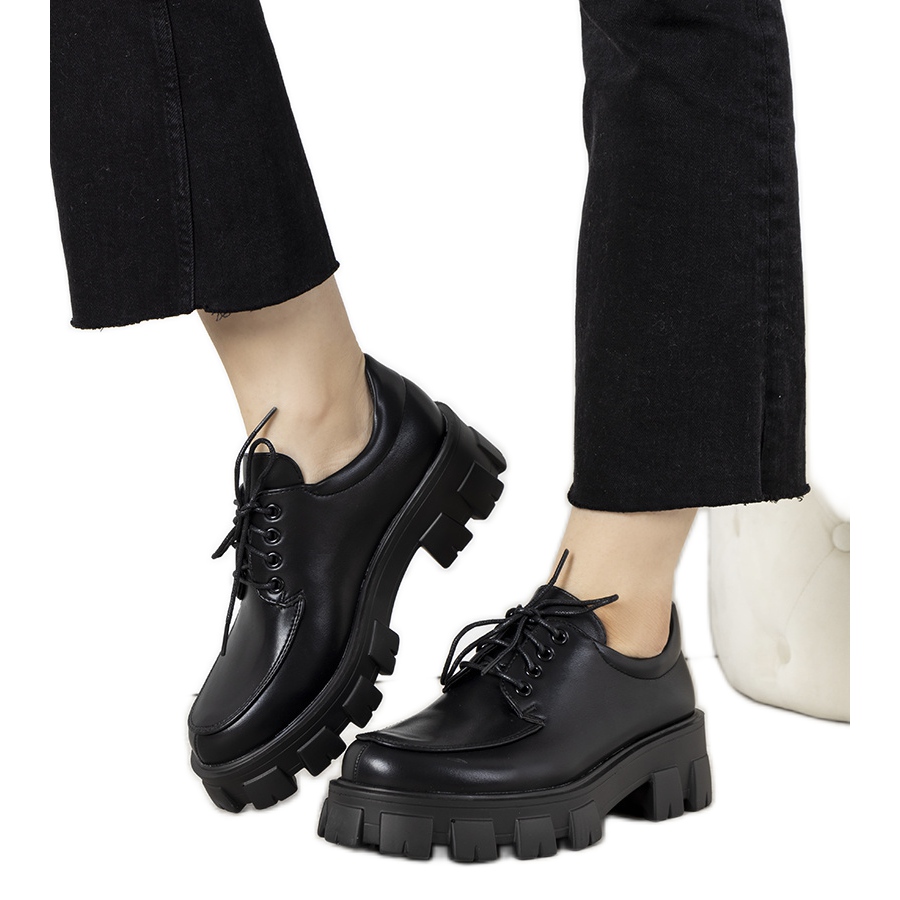 Detalii: Pantofi negri pe talpa Lamare groasă negru