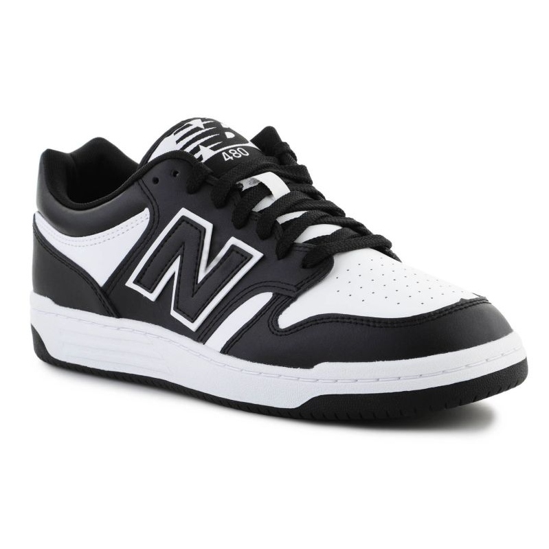 Pantofi New Balance BB480 (negru/alb) - adidași clasici inspirați de stilul baschetului, combinând puterea cu confortul utilizării de zi cu zi. Negru cu accente albe contrastante și un logo discret creează un aspect universal, urban-sport.