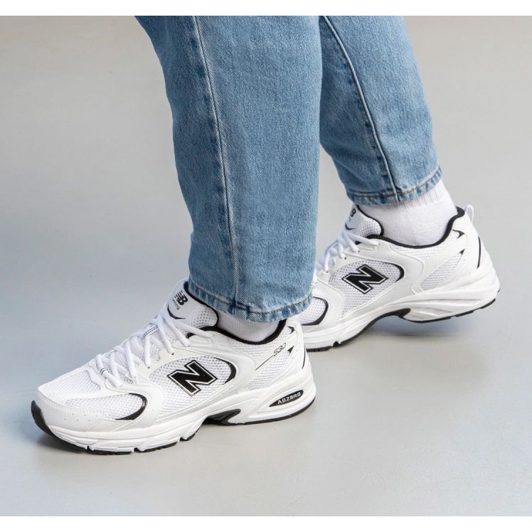 Designerii New Balance s-au concentrat pe materiale de cea mai înaltă calitate, combinând plasă respirabilă, piele elegantă și material sintetic reflectorizant în partea superioară. Această estetică old-school se potrivește perfect în tendințele actuale, iar pantofii albi MR530EWB pot fi asortati cu ușurință la o varietate de ținute - de la ținute casual la ținute mai sportive.