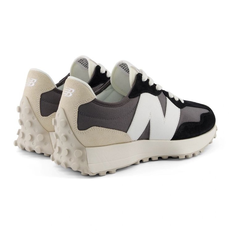 Un alt element caracteristic al pantofilor este litera laterală mărită „N”, care nu numai că constituie un accent vizual puternic, dar evidențiază și stilul unic al seriei 327. Datorită stratului gros de spumă EVA din talpa intermediară, pantofii oferă amortizare excelentă, ceea ce le face extrem de confortabile în timpul utilizării de zi cu zi.