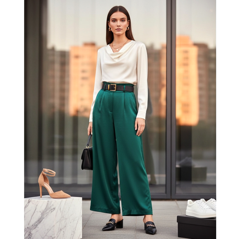 Pantalonii Palazzo sunt un stil extrem de la modă și universal, care este perfect atât pentru birou, cât și pentru viața de zi cu zi. Cu toate acestea, cheia succesului este selecția corectă de pantofi care să completeze întregul stil și să te facă să arăți elegant și la modă.