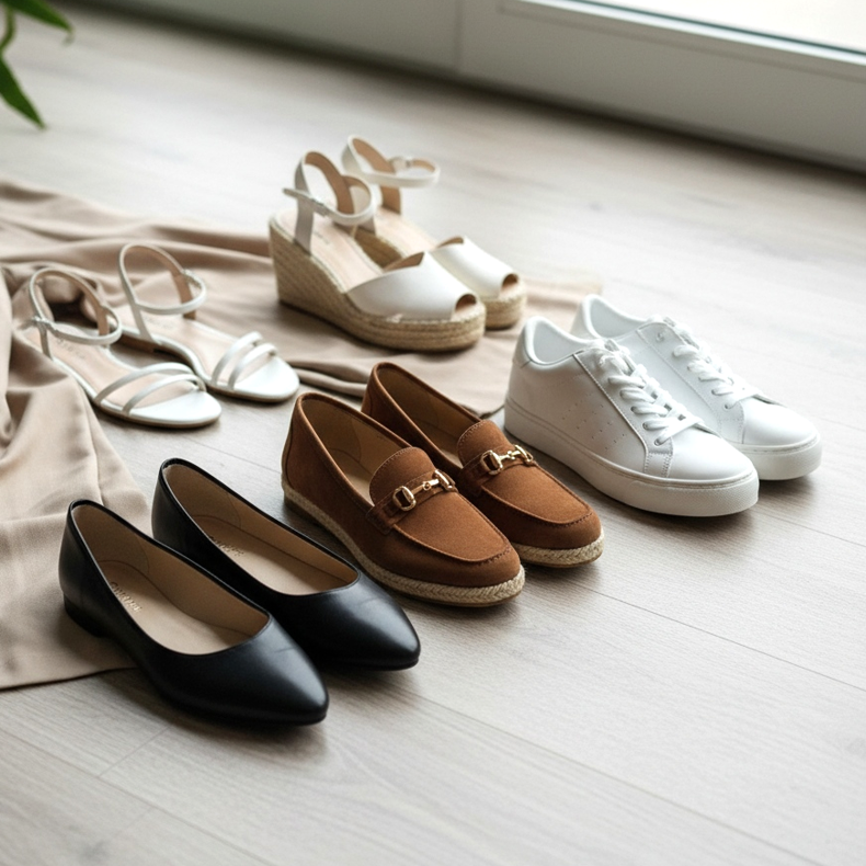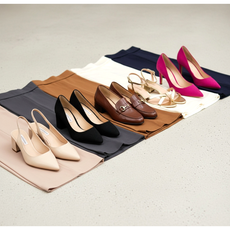 Pantofii in culori neutre - negru, bej sau maro - sunt si ei o solutie sigura. Aceste culori se potrivesc cu majoritatea stilurilor și vor funcționa bine atât la birou, cât și în fiecare zi.