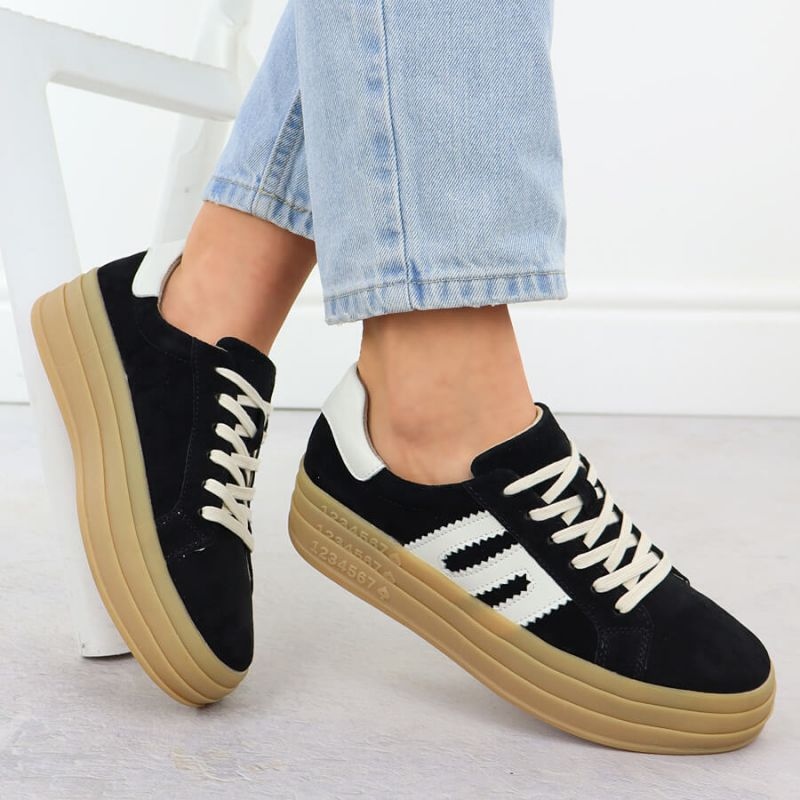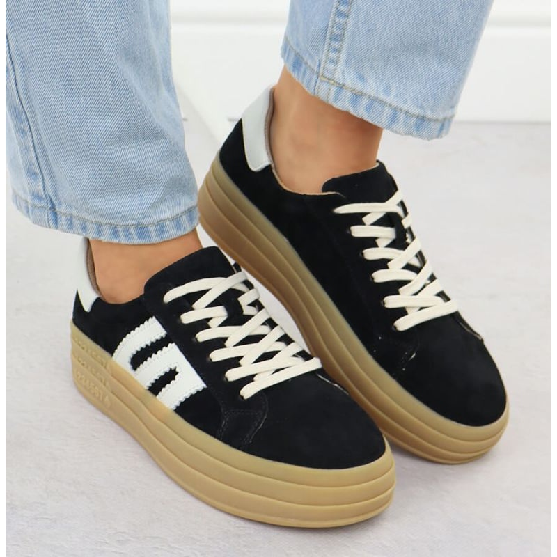 Culorile negre le oferă universalitate, permițându -le să se combine cu ușurință cu diferite articole din garderobă - de la blugi la rochii. Talculul moale, din piele, oferă un confort excepțional de purtare, ceea ce te face să te bucuri toată ziua. În plus, o platformă scăzută de 3 cm înaltă garantează comoditatea și suportul adecvat al piciorului.