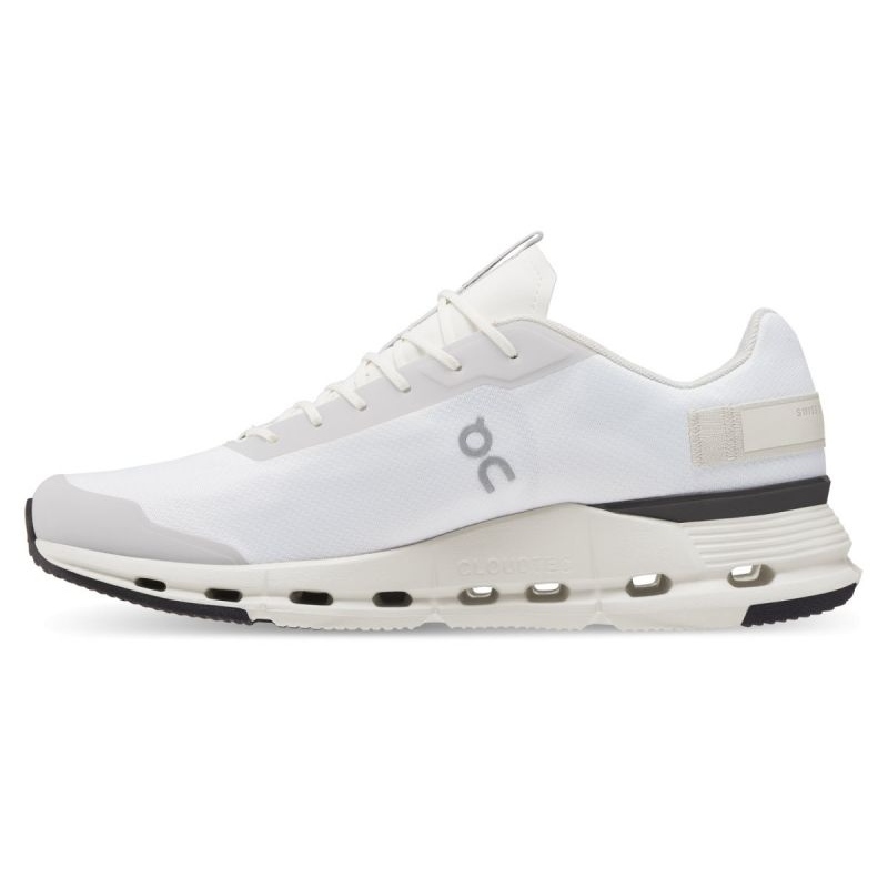 În primul rând, versiunea minimalistă a modelului On Running Cloudnova îi poate atrage pe cei care prețuiesc subtilitatea și eleganța. Silueta subtire si alb finisat cu detalii gri fac ca pantofii sa arate extrem de elegant.