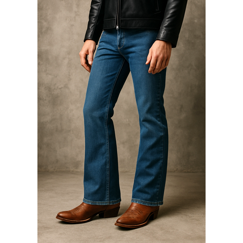 Blugii bootcut și flare se caracterizează printr-o extensie de la genunchi în jos, creată special pentru pantofii înalți. Cele mai potrivite sunt: cizme de cowboy (cizme western), cizme Chelsea, cizme jodhpur, cizme de muncitor, cizme înalte cu șireturi. Picioarele ar trebui să acopere partea superioară, căzând ușor peste pantof. Evită adidașii jos - vor părea pierduți sub pantalonii cu picioare largi. Blugii întunecați cu bootcut cu cizme Chelsea negre și o jachetă de piele sunt un aspect rock. Erupții strălucitoare cu cizme de cowboy maro conferă stilului o atmosferă boho-country. Această tăietură de blugi a revenit în favoarea modului modern pentru bărbați.