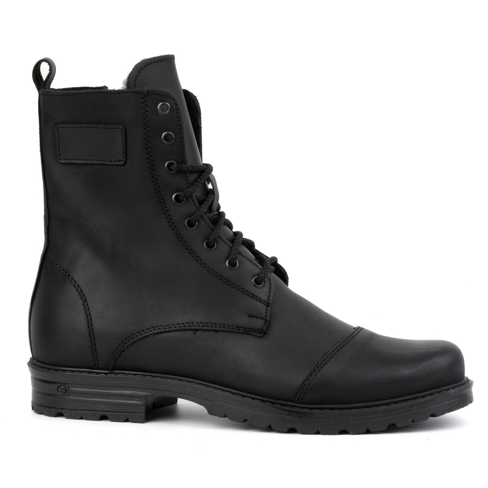 Pantofi de piele pentru bărbați înalte 2118/2 de Polbut este o propunere ideală pentru bărbații care caută o combinație de funcționalitate cu un stil unic. Acești pantofi negri nu numai că se disting prin designul militar, dar asigură și confort și durabilitate în toate condițiile.