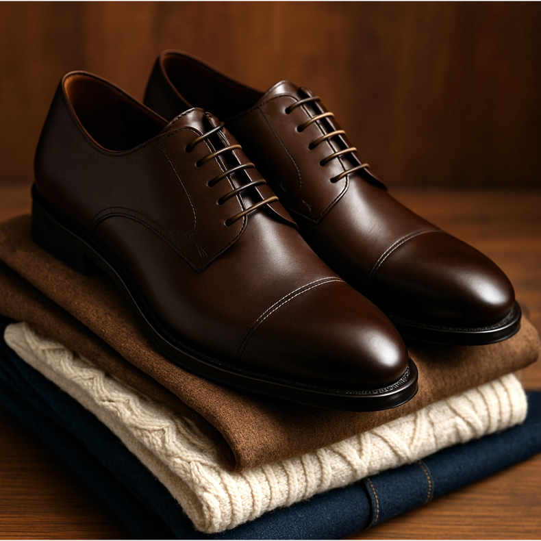 Puțin mai puțin formal decât Oxford, dar totuși foarte elegant. Șireturile deschise le fac mai confortabile pentru picioare mai largi. Pantofii derby sunt perfecti pentru mediile business casual și smart casual.
