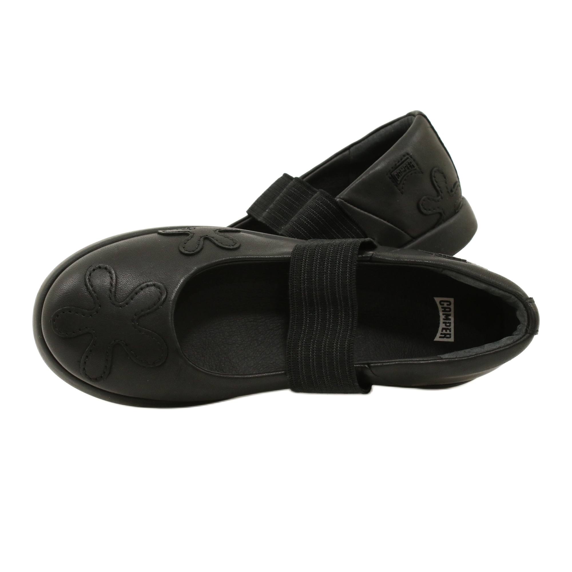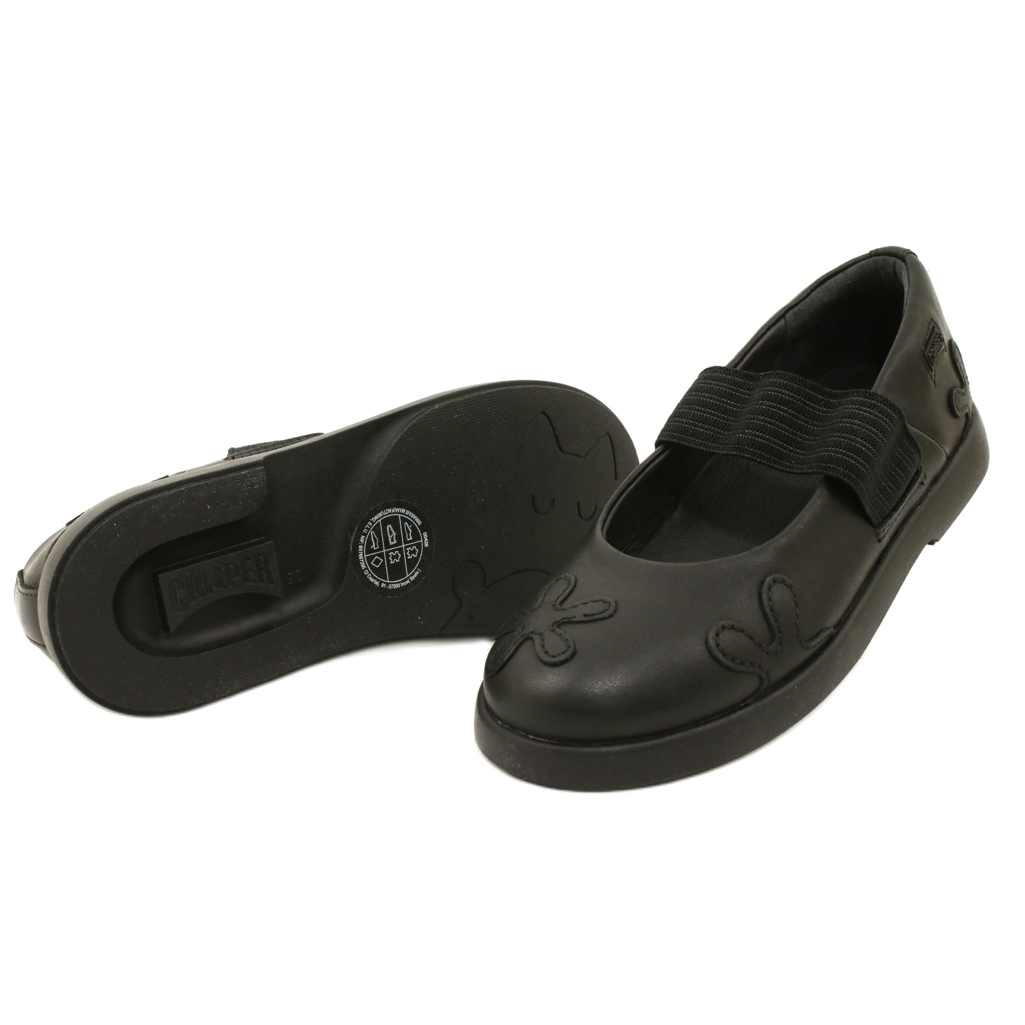 Frontul construit protejează eficient degetele mici, iar talpa absoarbe fiecare pas, ceea ce afectează confortul în timp ce se joacă și mersul. Culoarea neagră clasică va atrage cu siguranță părinții, iar designul la modă va face balerinele un complement excelent pentru orice stilizare.
