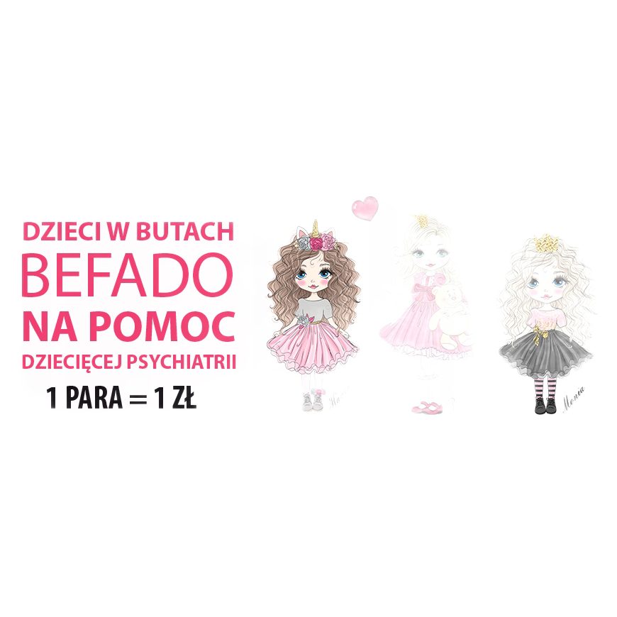 Pentru fiecare pereche de pantofi vândută, Befado donează 1 PLN pentru a ajuta copiii, combinând astfel frumusețea și confortul produsului cu activități caritabile. La proiectarea acestei colecții, brandul s-a concentrat nu numai pe estetică, ci și pe aspectele de sănătate ale utilizării încălțămintei de către copii. Din acest motiv, încălțămintea Befado „Blanka pink” este recomandată de specialiști și are prestigiosul Healthy Foot Mark.
