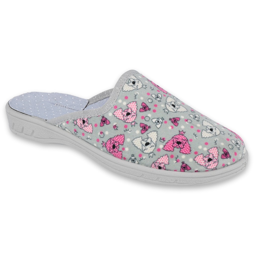 Papucii de copii Befado 707Y411 in roz si gri sunt alegerea perfecta pentru copiii care petrec tot mai mult timp acasa toamna si iarna. Datorită designului colorat, atractiv și construcției ușoare, acești papuci de la modelul Jogi vor atrage cu siguranță fiecare copil și îl vor încuraja să-și pună pantofi acasă.