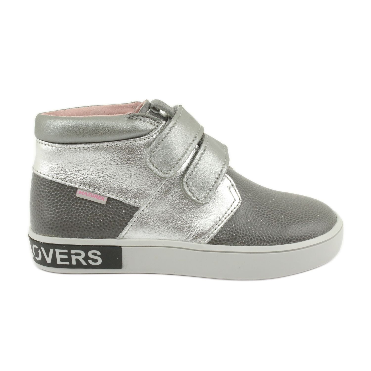 Mazurek Mazurek Pantofi pentru copii din piele pentru Velcro 1356 gri/argintiu