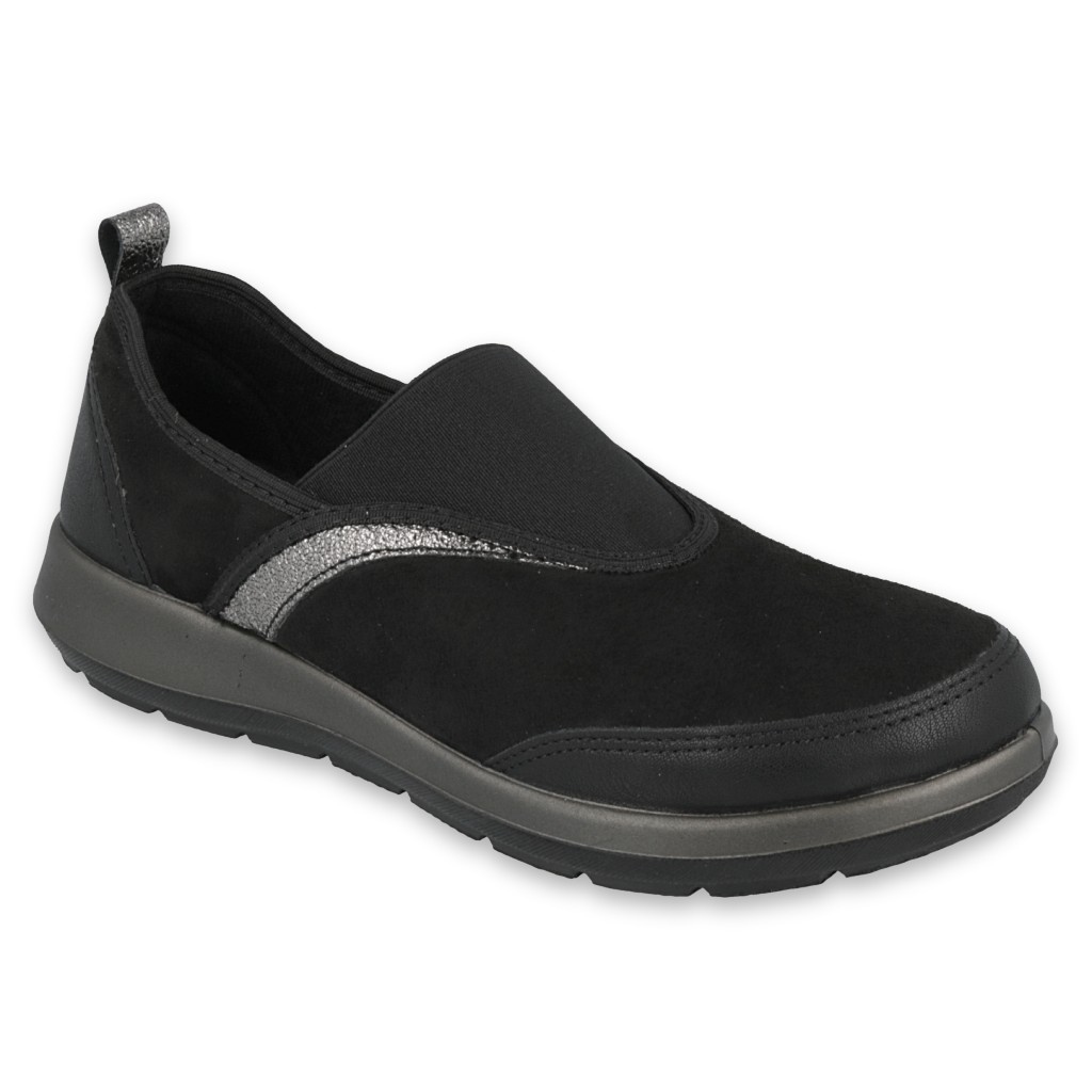 Clasic, confortabil și ușor de pus - acestea sunt pantofii pentru femei Befado 156d006 pentru femei. O tăietură simplă, minimalistă, în negru universal, cu accente gri, îi face să funcționeze atât ca papuci de casă, cât și ca încălțăminte confortabilă pentru ieșiri rapide. Lipsa de fermoare și șireturi permite introducerea instantanee a piciorului, iar nasul rotund asigură un aranjament natural al degetelor.