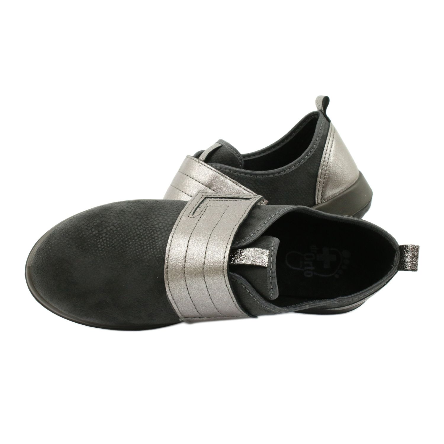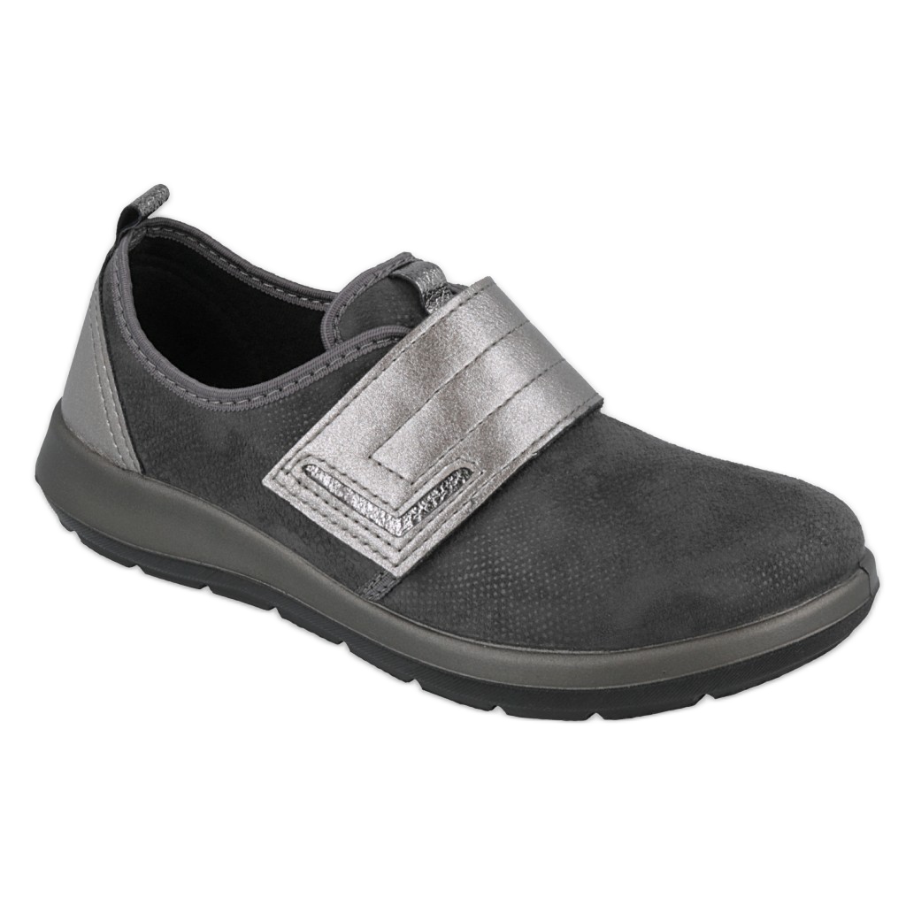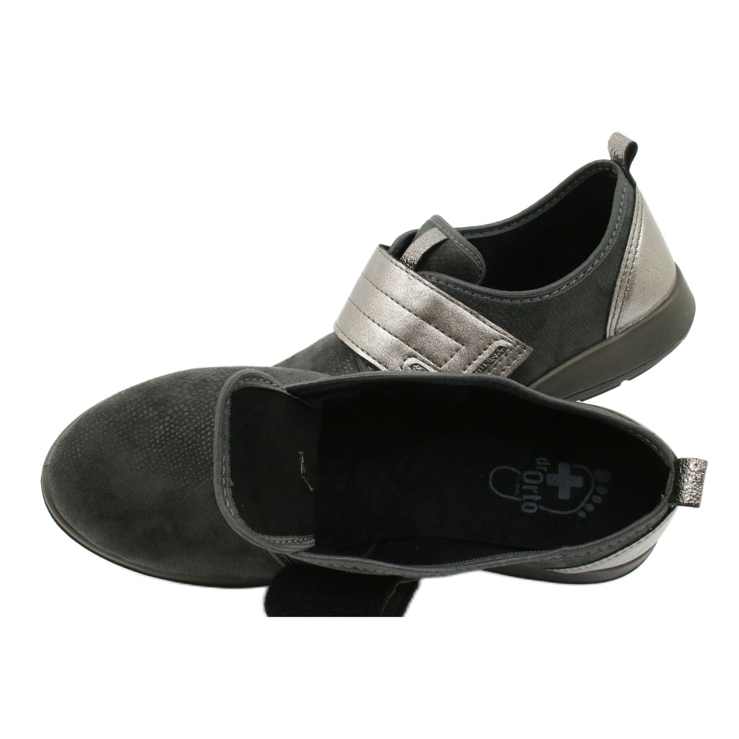 Dr.orto Befado 156d003 - Pantofi confortabili pentru femei pentru femei, combinând simplitatea și funcționalitatea. Materialul textil negru cu inserții gri subtile, ușor strălucitoare pe spate și fixarea le oferă un aspect elegant, dar practic. Un nas clasic, rotund și o inserție moale, materială, asigură confortul toată ziua.