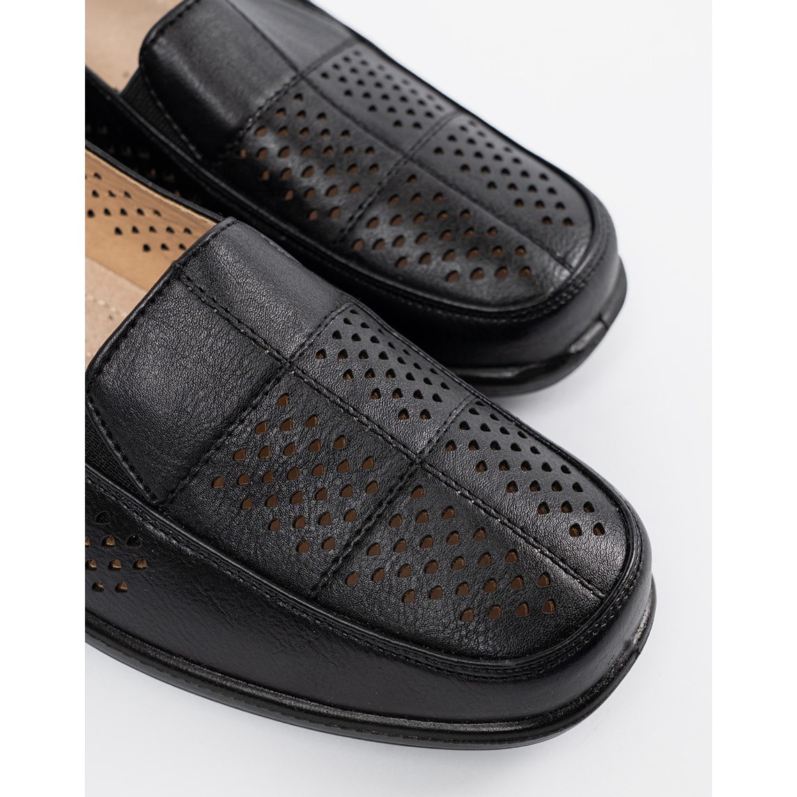 Fabricat din piele ecologică de înaltă calitate, pantofii au un nas rotund și un călcâi încorporat, înțepenit, care asigură confort atunci când purtați. Interiorul încălțămintei căptușite cu piele naturală garantează confortul, chiar și în timpul utilizării îndelungate. Fixarea în sistemul inserat face ca să le punem rapid și simplu, ceea ce este un mare avantaj în utilizarea de zi cu zi.