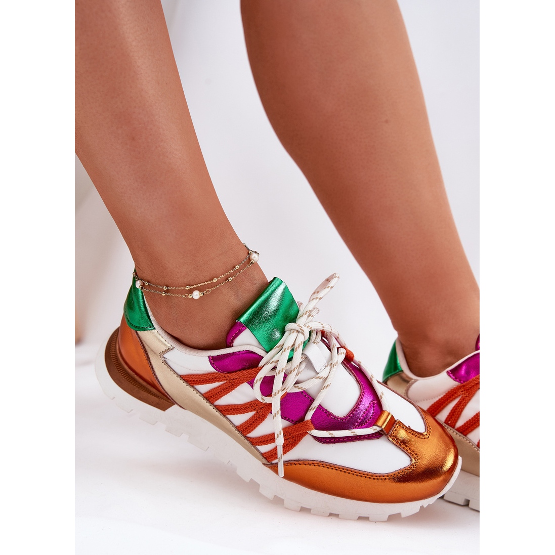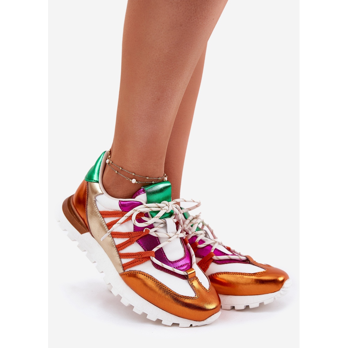 Talpa cu banda de rulare nu numai că garantează o aderență excelentă, dar adaugă și un personaj la modă. Lacingul larg vă permite să potriviți perfect forma piciorului, ceea ce face ca acești pantofi să fie un element de neînlocuit al oricărei stilizări. Înălțimea superiorului de 7,5 cm și o platformă înaltă de 2,5 cm le face scăzute, dar în același timp subliniază figura feminină.