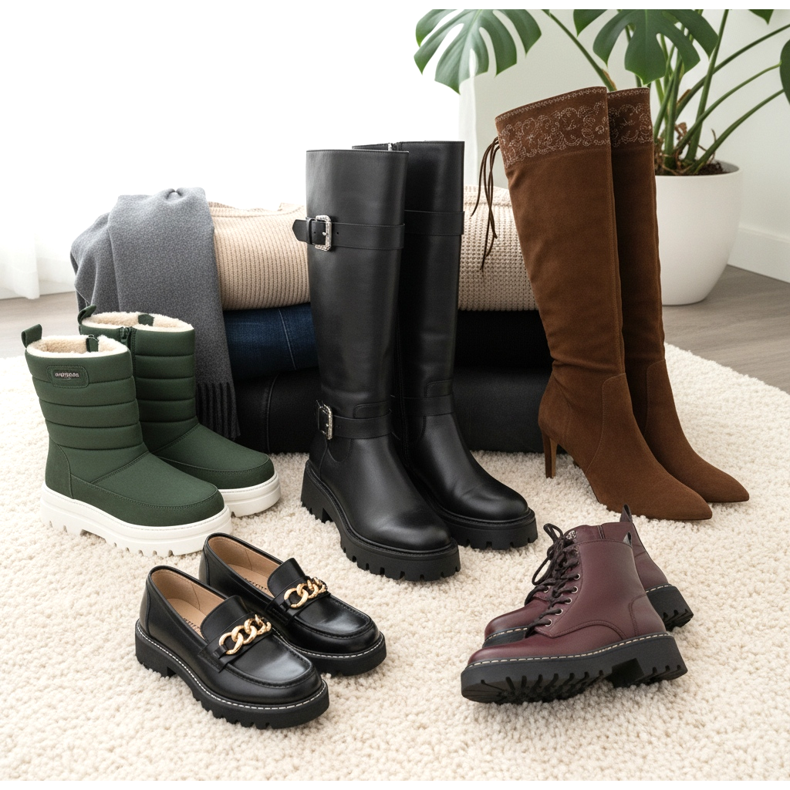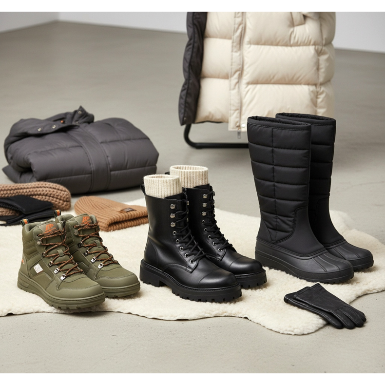 Iarna, atunci când alegeți o jachetă groasă și caldă de puf, pantofii izolați vor funcționa cel mai bine. Cizmele izolate, cizmele pentru zăpadă sau cizmele cu blană vor oferi o protecție adecvată împotriva înghețului în timp ce arată la modă. Merita sa alegeti modele cu talpa antiderapanta, care va asigura siguranta pe suprafetele inghetate.