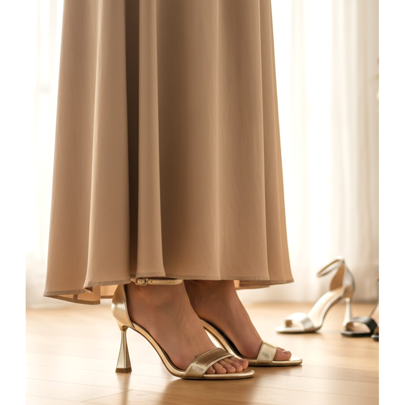 În 2026, sandalele gladiator pentru rochii maxi sunt la modă - bretelele lor caracteristice ies în evidență de sub marginea rochiei și creează un detaliu atrăgător. Șlapii cu toc sau cu platformă sunt o opțiune mai confortabilă pentru ieșirile mai lungi. Amintiți-vă că cu o rochie maxi nu trebuie să vă faceți griji pentru o talpă plată - atâta timp cât rochia nu ține pe pământ, sandalele plate sunt o alegere excelentă și confortabilă.