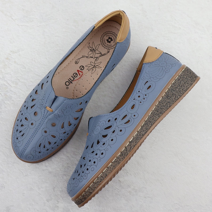 Descoperiți stilul unic și confortul inegalabil, datorită jumătății openwork pentru femei din piele - dar pe o platformă într -o culoare elegantă albastru bleumarin de la brandul EVETO - Model 7007. Aceste pantofi frumoși vor fi cu siguranță înghețați de stilizarea dvs., potrivite ideal atât pentru combinații de zi cu zi, cât și mai formale.