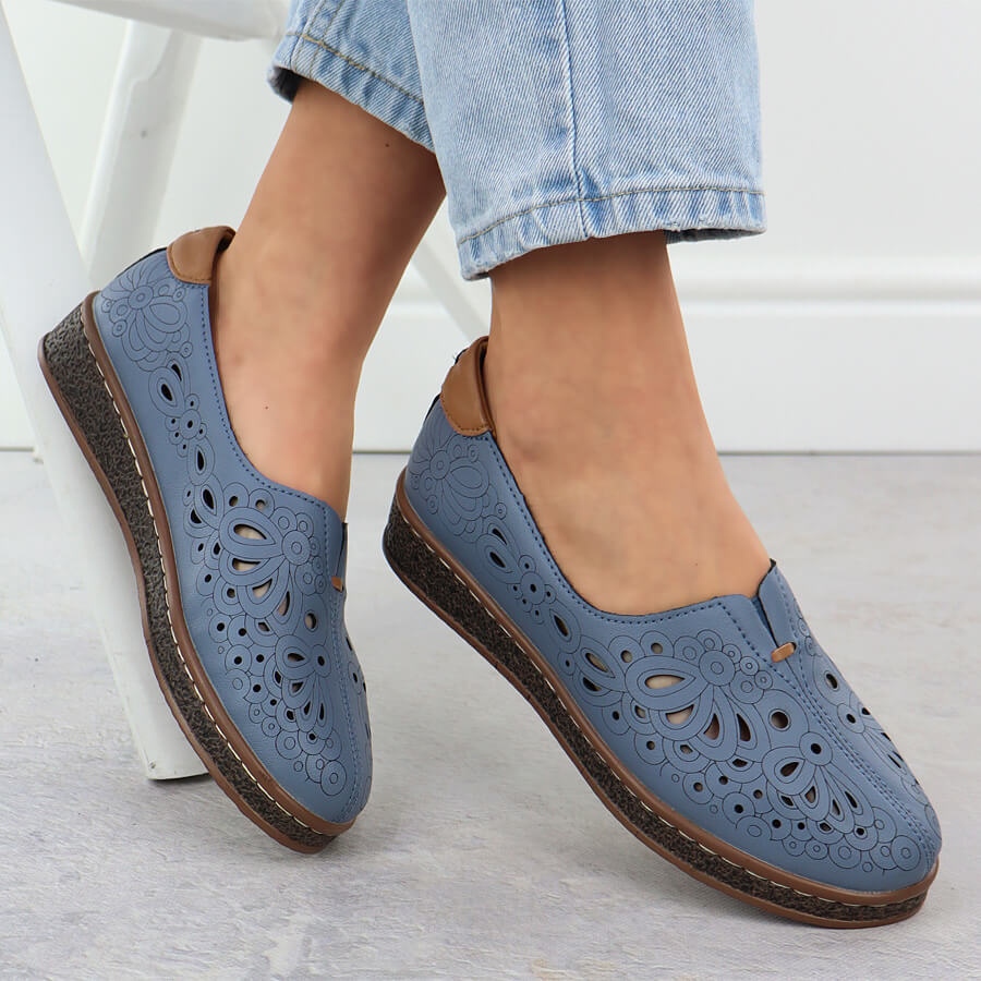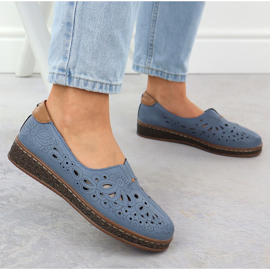 Modelul 7007 se caracterizează printr -un nas rotund și o platformă înaltă de 3 cm, ceea ce adaugă o creștere subtilă, fără a renunța la confort. Pantofii sunt introduși, ceea ce face mai ușor să se pună și să decoleze, iar tăierea lor clasică în nuanțe de albastru le face să se potrivească cu multe stiluri.