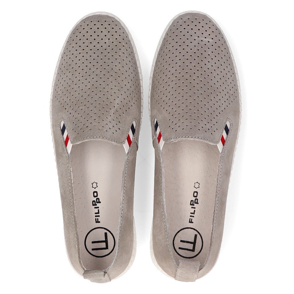 Pantofii din piele FILIPPO DP1272/21 într-o nuanță elegantă de gri sunt o propunere ideală pentru femeile care apreciază stilul și confortul de zi cu zi. Acești pantofi slip-on, echipați cu un vârf rotund, se remarcă printr-un design ajurat la modă care le adaugă lejeritate și originalitate.