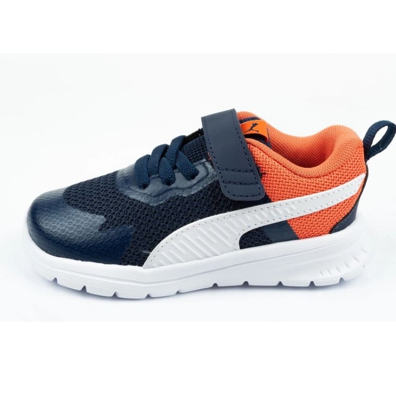 Pantofi pentru copii la modă și confortabil Puma Evolve Run Jr este o propunere pentru băieții activi care au nevoie de confort în fiecare zi - pentru școală, pentru un loc de joacă și când se joacă în aer liber. Silueta cu profil scăzut dintr -o nuanță albastră bleumarin combină stilul sportiv cu soluții funcționale care facilitează utilizarea.
