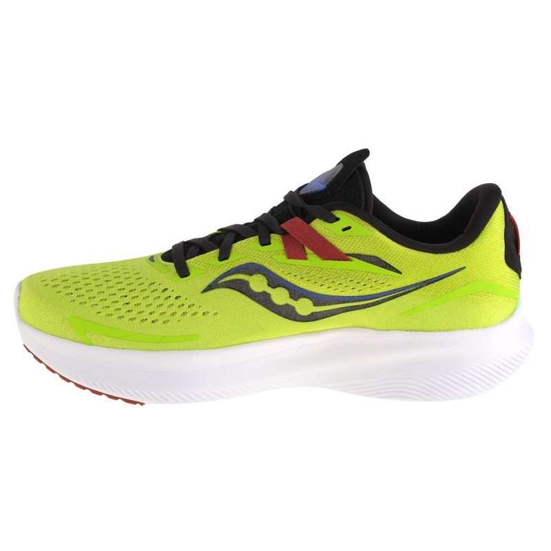 Pantofii Saucony Ride 15 M S20729-25 sunt o alegere excelentă pentru bărbații care caută confort și sprijin în timpul antrenamentului de alergare. Acești pantofi de alergare joasă se caracterizează printr-un design modern într-o culoare verde, care nu numai că îi face să arate grozav, dar asigură și o funcționalitate ridicată.