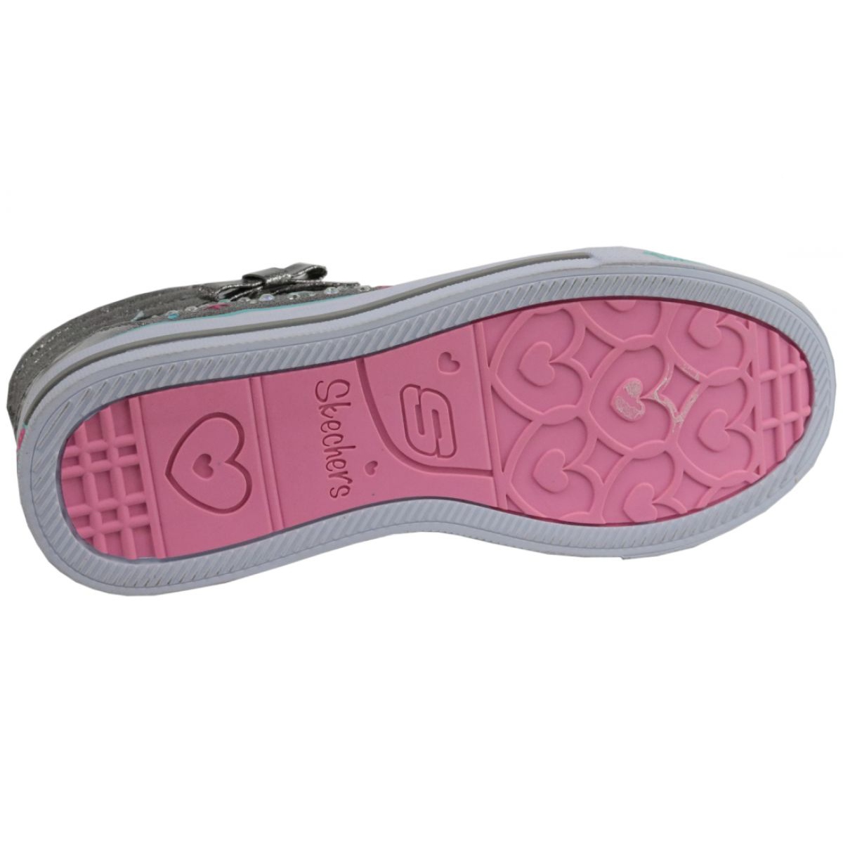 Pantofii Skechers Shuffles Jr 10712L-GUTQ în culoarea gri sunt alegerea perfectă pentru tinerele fashioniste. Acești pantofi sport stilați, joasă, sunt perfecți pentru activitățile de zi cu zi, combinând confortul cu designul la modă.