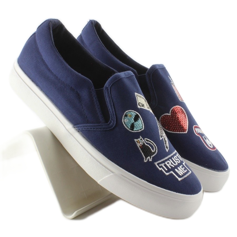 Inna marka Pantofi slip-on cu broderie NB102P Albastru Inchis albastru marin