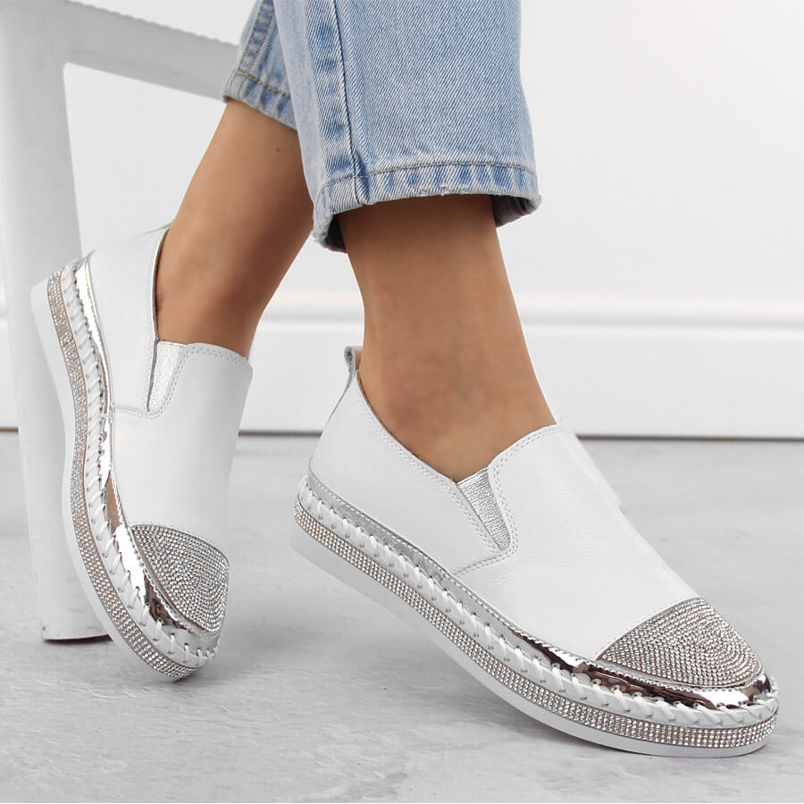 Detalii: S.Barski Pantofi slip-on damă din piele cu zirconi, alb D&A LR370