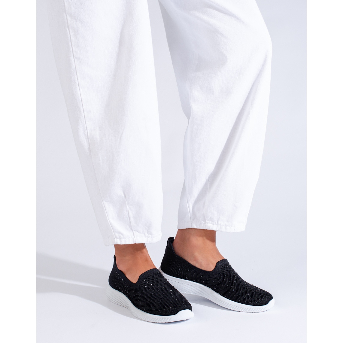 Este vorba de pantofi slip-on din material negru cu crampoane de la faimosul brand Shelovet, care se potrivesc perfect unui stil sportiv si casual. Perfecti pentru utilizarea de zi cu zi, acești pantofi la modă vor oferi confort și libertate de mișcare grație călcâiului moale încorporat și materialului superior flexibil, care este fabricat 100% din material textil durabil.