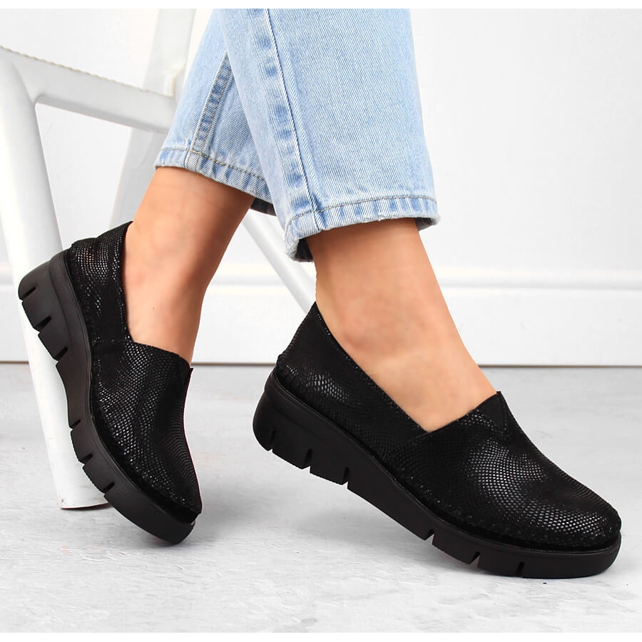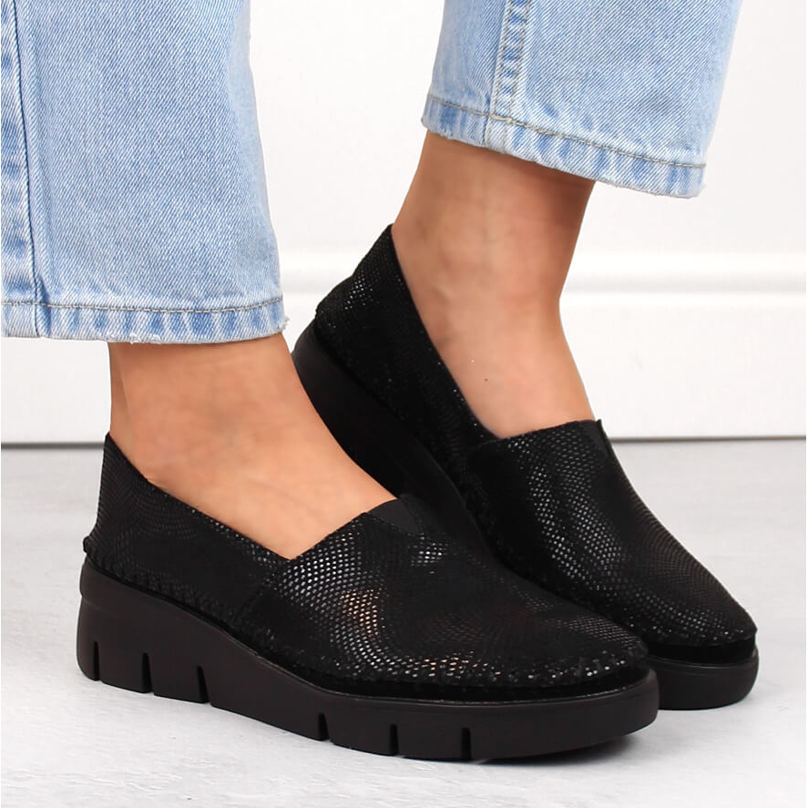 Pana de 5 cm înălțime asigură confortul la purtare în timp ce ridică silueta, iar închiderea cu slip-on îl face ușor de pus și scos rapid. Pantofii sunt disponibili într-o culoare neagră elegantă, care adaugă o notă de lux oricărei garderobe. Perfecti pentru serviciu, intalniri sau serile in afara, acesti pantofi imbina moda cu practic.